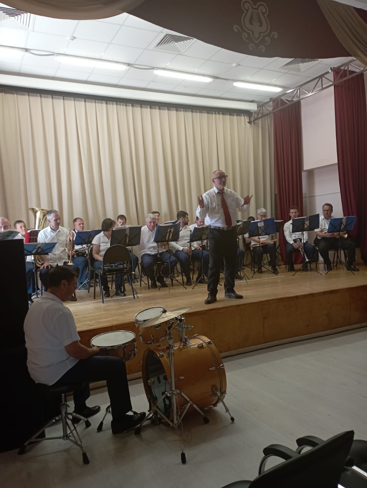 26 мая в Полдневском Доме Культуры состоялся концерт, приуроченный к 80-летию Победы в ВОВ «Навсегда Великая страна.» Для зрителей выступил Астраханский Духовой оркестр под руководством заслуженного работника культуры РФ Владимира Алатарцева. Этот замечательный подарок мы получили от Дирекции по реализации культурно-массовых программ. В исполнении оркестра звучали марши, вальсы, песни военных лет, фантазии на тему советских кинофильмов. Живая музыка, лёгкое общение между зрителями и артистами привели собравшихся в восторг. В завершении концерта когда звучали «Марш Славянки и » День Победы » все встали. Зрители громкими аплодисментами благодарили артистов за замечательный концерт.