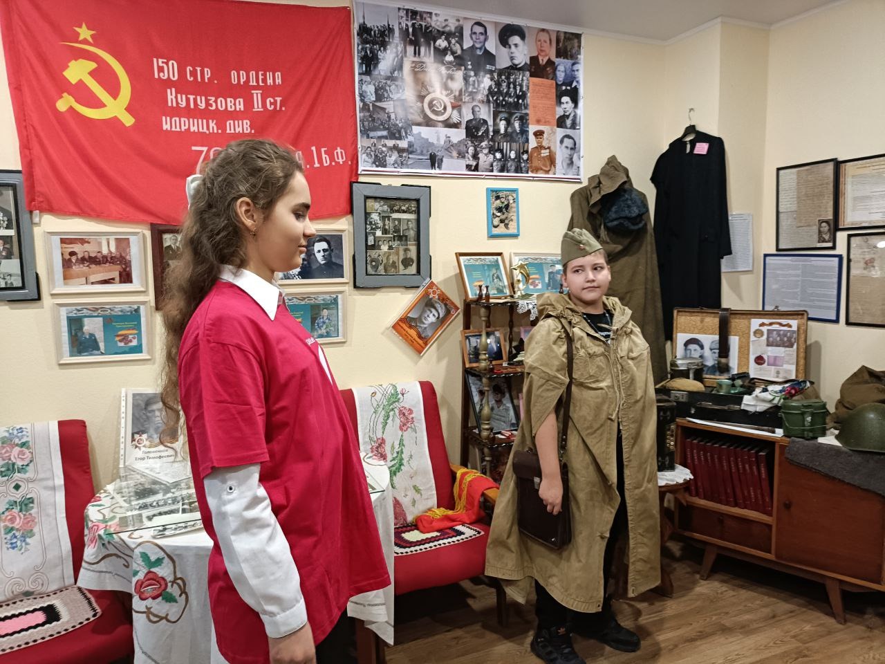 Затем гости отправились в увлекательное путешествие в историю и увидели, как в музее реализуется проект «Экскурсовод-профессия будущего». Учащиеся МКОУ «Травинская СОШ» Анисимова Екатерина, Беликова Дарья и Ибраев Наиль провели экскурсии и рассказали о жизни и быте односельчан в конце Х1Х-го и первой половине ХХ-го веков. А в комнате Боевой Славы стали свидетелями трогательной сцены возвращения с фронта одного из братьев Чилимских. Брата и сестру сыграли ученики Тулинов Максим и Анисимова Екатерина. История пяти из восьми погибших братьев Чилимских растрогала присутствующих до слез. Должное внимание было уделено выставке работ учащих травинского филиала Камызякской школы искусств. Каждый маленький художник под руководством наставника Еранцевой А.А. смог выразить свою любовь и уважение к малой родине через свои творческие работы.