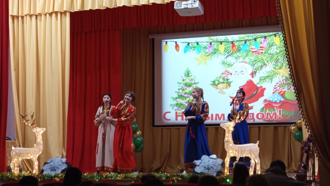 Новогоднее представление закончилось песней «Жить нам 100 лет» в исполнении трио «Любава».