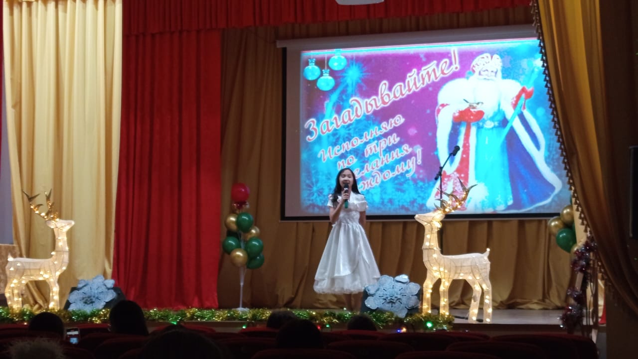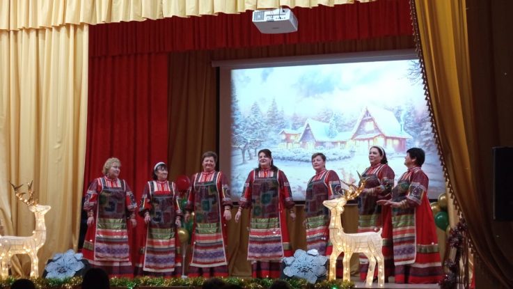 Прозвучали новогодние и русские народные песни в исполнении народного ансамбля «Волжанка»,вокального детского ансамбля «Юность»,трио «Любава» (руководитель Л.И. Якимова), Вокального дуэта Т. Макаровой и А.Еранцева, Вокального дуэта Л.Якимовой и С.Ратьева, танцевальной группы «Театральные звезды» (руководитель С.Пономарева),солистов Амины Усировой, Светланы Мясоедовой и Александры Гончаровой, Любови Якимовой, Татьяны Макаровой, Любови Чужды, Сергея Ратьева, Андрея Еранцева.