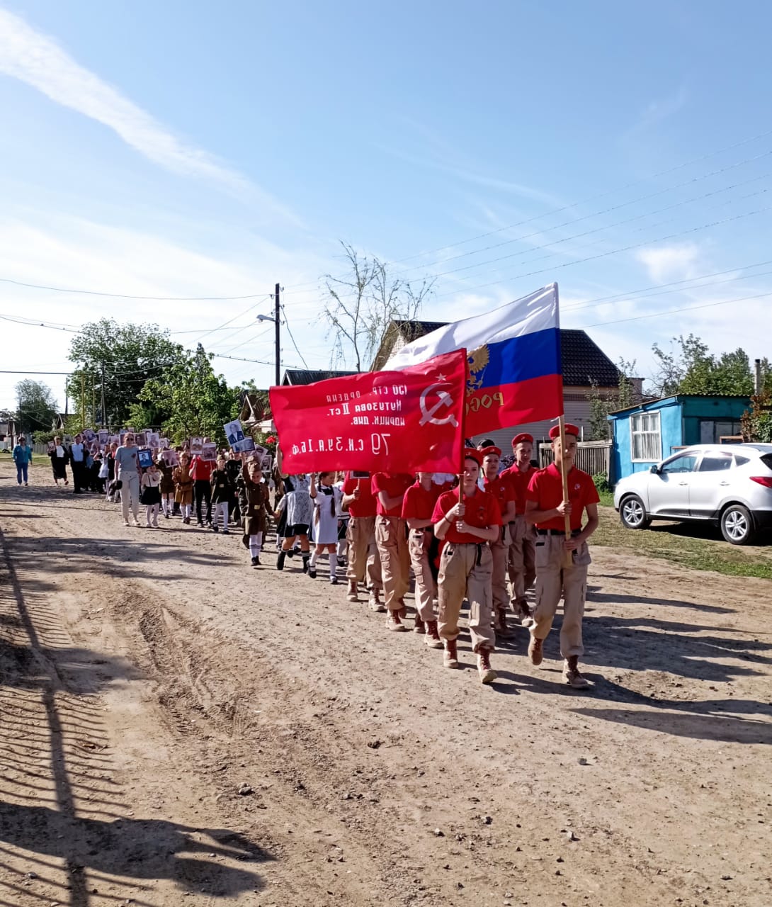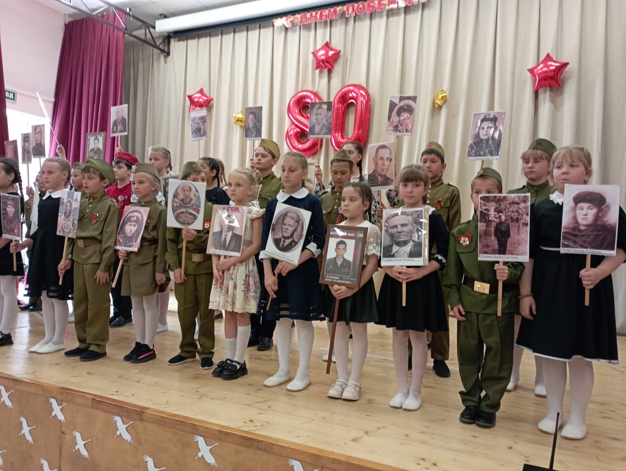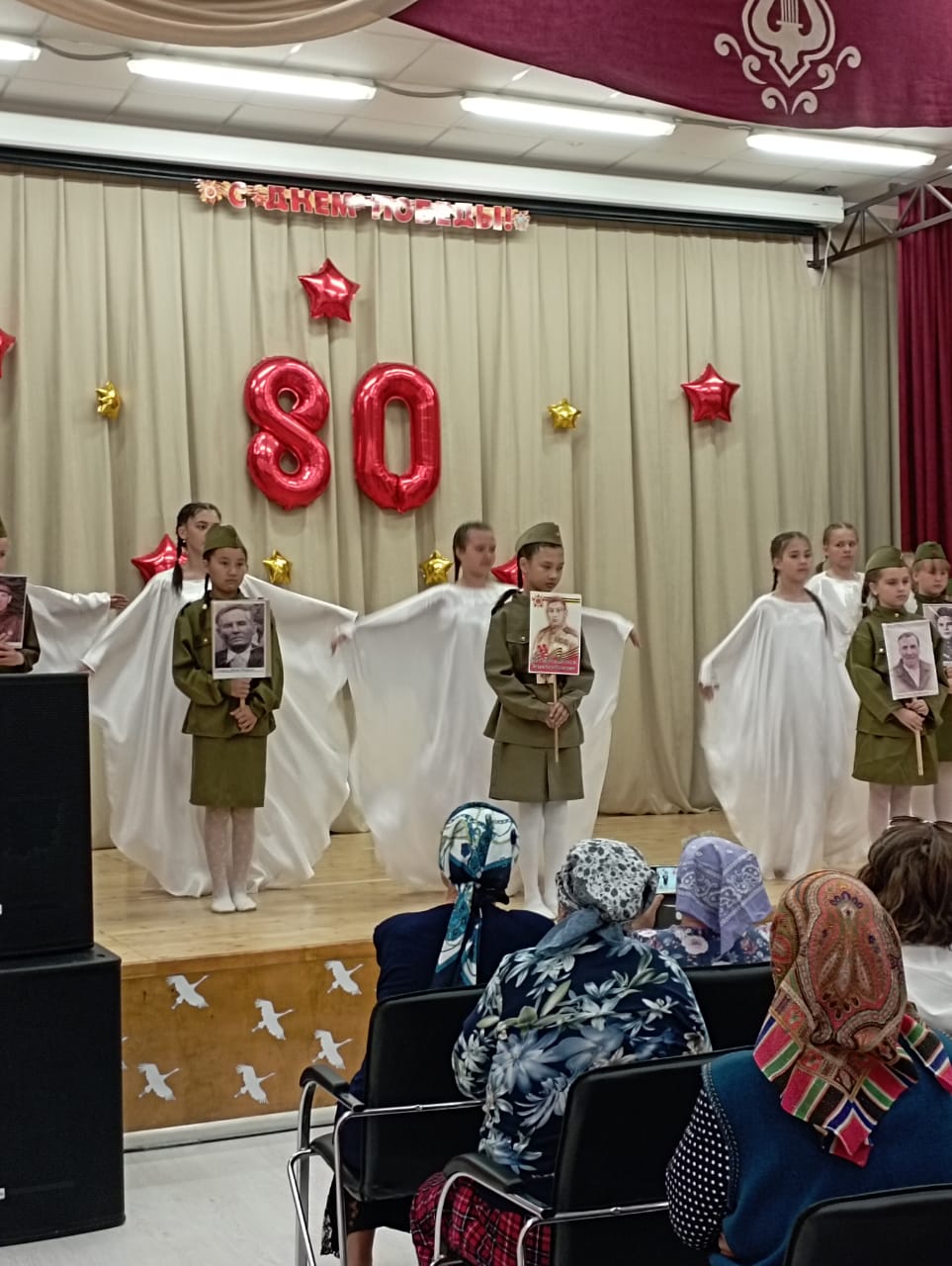 9 мая-80 лет Великой Победы. В этот день праздничные мероприятия начались с шествия Бессмертного полка. Учащиеся Полдневской СОШ и жители села прошли с фотографиями родственников по главной улице, улице Братьев Фоминых. Затем у Памятника Павшим Односельчанам состоялся торжественный Митинг. Всех собравшихся с Великим Днём Победы поздравила представитель Администрации Л. Нургушева. Минутой молчания почтили память погибших и возложили венки и цветы к памятнику. После окончания митинга всех пригласили на праздничный концерт в Дом Культуры. День Победы это праздник со слезами на глазах. Наши артисты вложили душу в свои номера и зрители это чувствовали. Радость Победы, боль утрат, гордость за свой народ, свою Родину. Для гостей выступили; С. Кузыченко, С. Макаров, Л. Нургушева, народный хор «Ивушка», детские коллективы » Капельки «, » Жемчужинки «, «Акварель», воспитанники детского сада. Вели праздничный концерт С. Макаров и А. Макарова Как всегда завершился концерт исполнением песни » День Победы «Зрители благодарили наших артистов громкими апплодисментами.