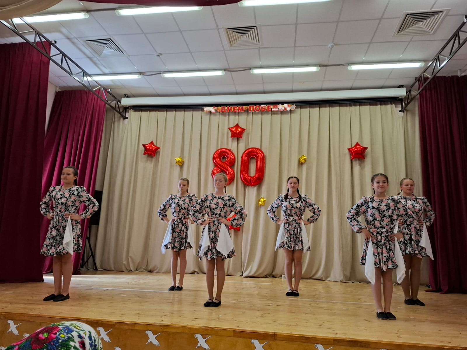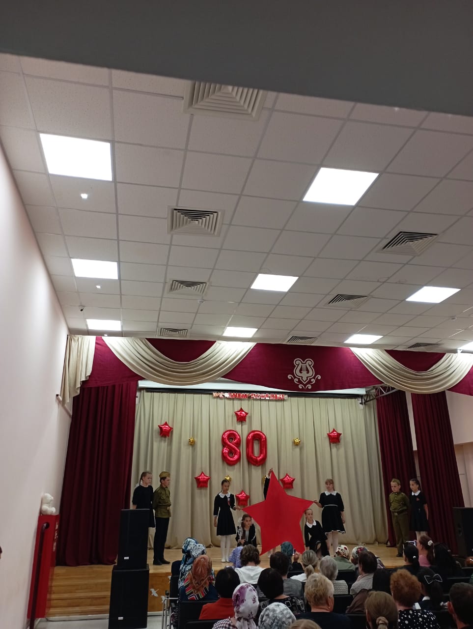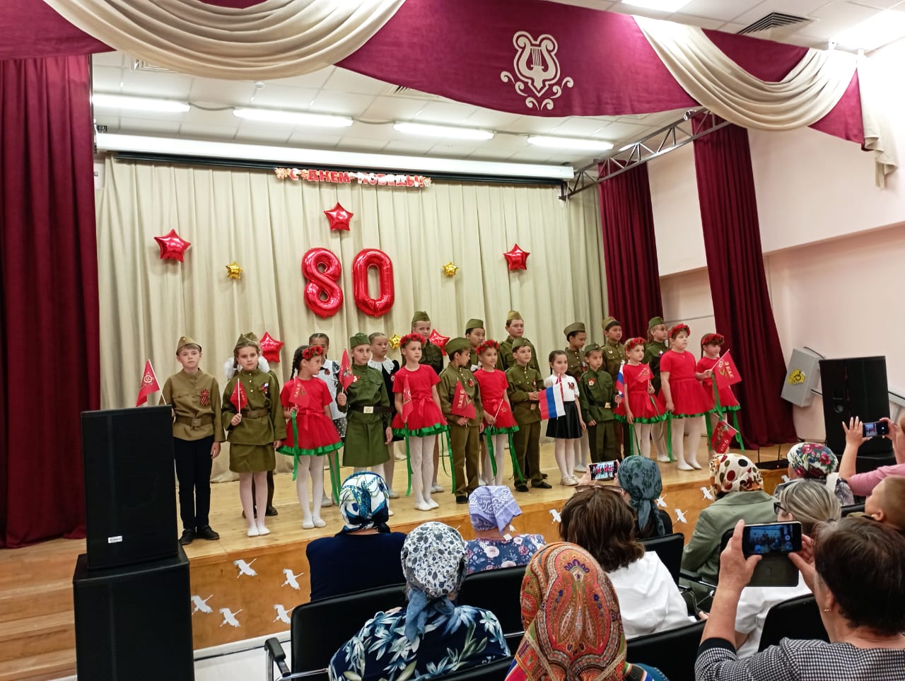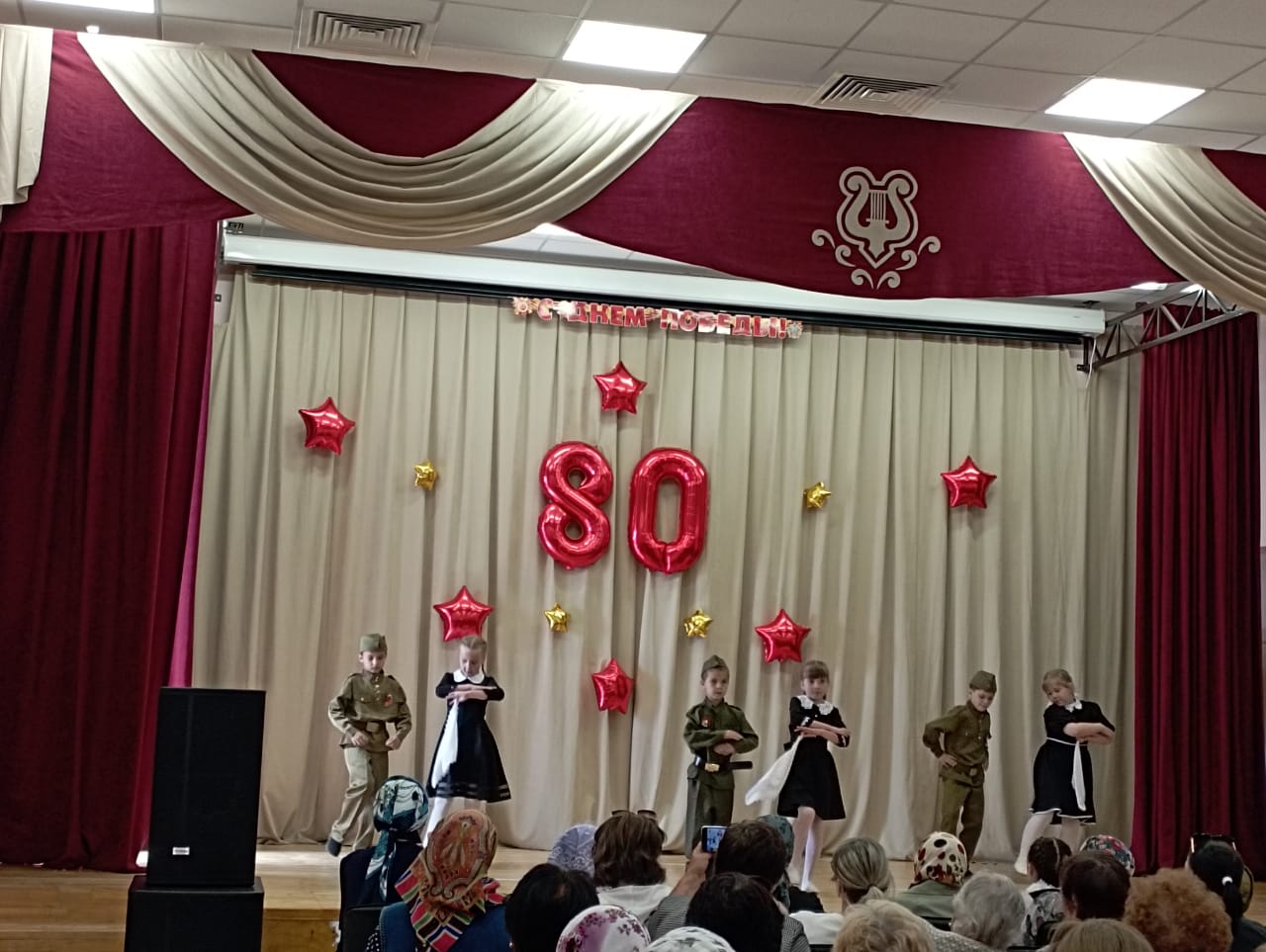 9 мая-80 лет Великой Победы. В этот день праздничные мероприятия начались с шествия Бессмертного полка. Учащиеся Полдневской СОШ и жители села прошли с фотографиями родственников по главной улице, улице Братьев Фоминых. Затем у Памятника Павшим Односельчанам состоялся торжественный Митинг. Всех собравшихся с Великим Днём Победы поздравила представитель Администрации Л. Нургушева. Минутой молчания почтили память погибших и возложили венки и цветы к памятнику. После окончания митинга всех пригласили на праздничный концерт в Дом Культуры. День Победы это праздник со слезами на глазах. Наши артисты вложили душу в свои номера и зрители это чувствовали. Радость Победы, боль утрат, гордость за свой народ, свою Родину. Для гостей выступили; С. Кузыченко, С. Макаров, Л. Нургушева, народный хор «Ивушка», детские коллективы » Капельки «, » Жемчужинки «, «Акварель», воспитанники детского сада. Вели праздничный концерт С. Макаров и А. Макарова Как всегда завершился концерт исполнением песни » День Победы «Зрители благодарили наших артистов громкими апплодисментами.